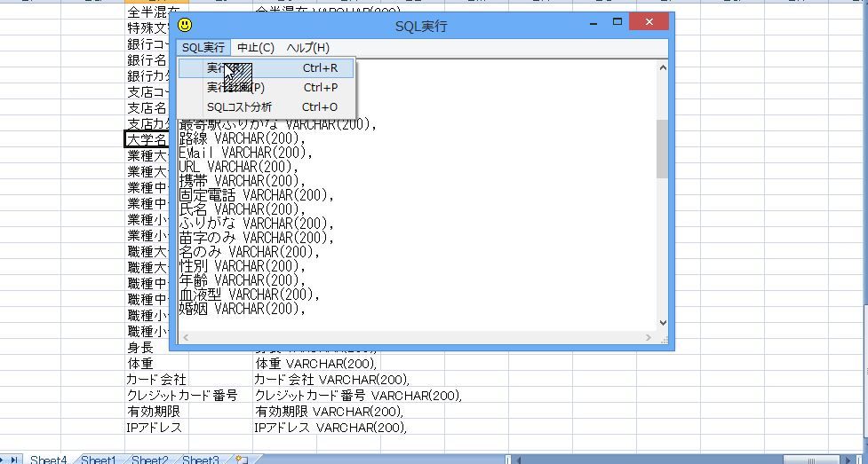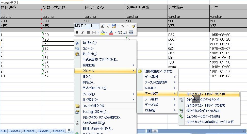 Excelを開いて、シート上にて右クリックして、テーブルデータを取得してみます。