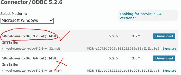 ODBC5.2.6:64BitのWindowsでもx86 32bitのODBCをインストールする必要があります。