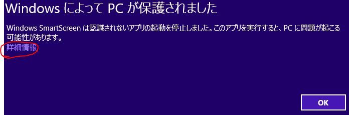 Windows8.1でインストールする場合、以下のメッセージが表示されます。
